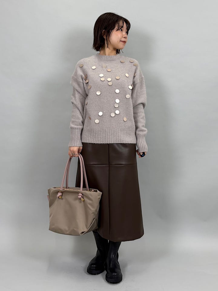 柔らかく軽いフォックス素材。繊維が細く柔らかいので、ふわっと着心地抜群です◎非常に軽くとても保温性が高いため、ストレスフリーで着ていただけます。大きめのスパンコールが上品に光り、華やかに着ていただけます。