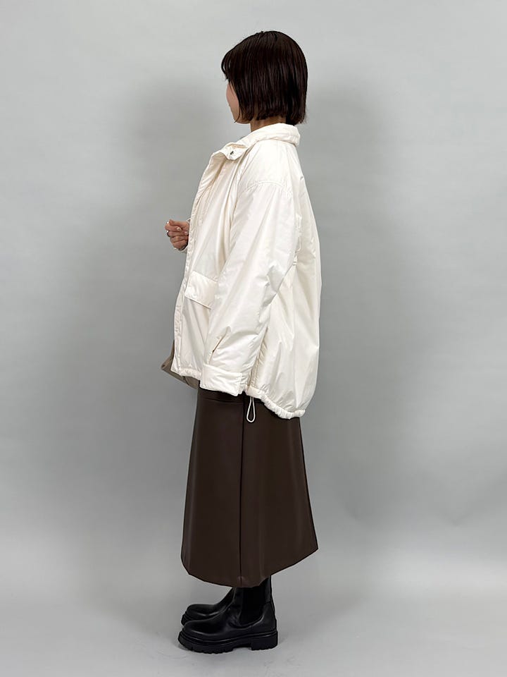肌触りなめらかでやわらかい素材感。伸縮性もあり楽な穿き心地です。マットな質感なので、カジュアルにも合わせやすいです◎程よく張りがあるのでAラインシルエットが綺麗に出て、脚のラインをカバーできます。