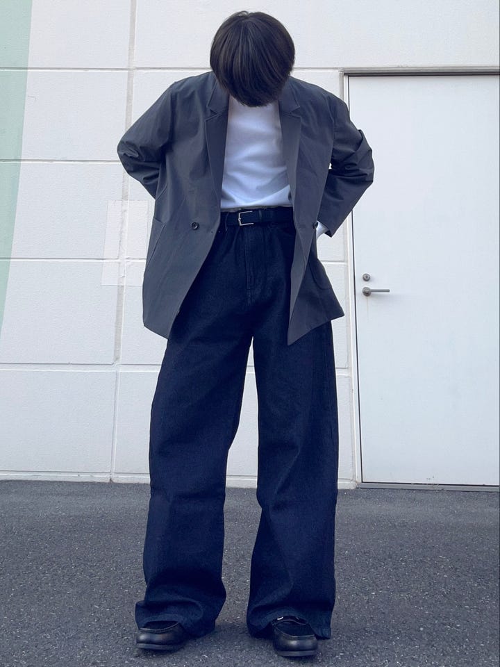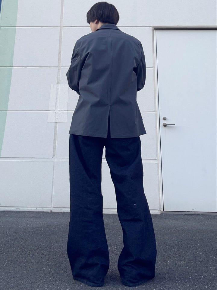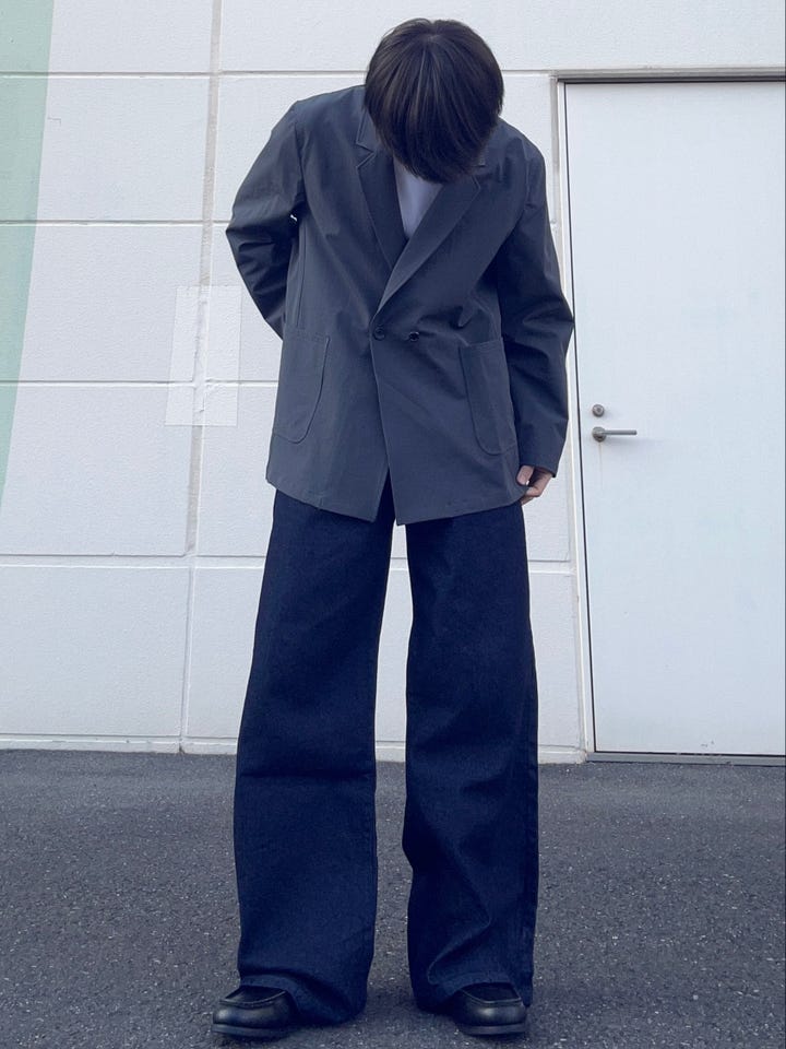 〔LARGE〕SHIPS any: ウォッシュド デニム セミフレア ワイド パンツ (セットアップ対応)◇