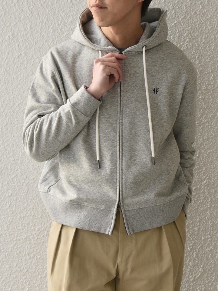 〔MEDIUM〕【WEB限定】SHIPS: クロップド ワイド ワンポイント ロゴ ジップアップ フーディー