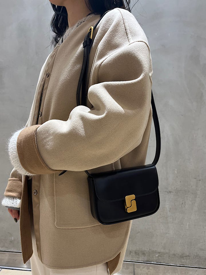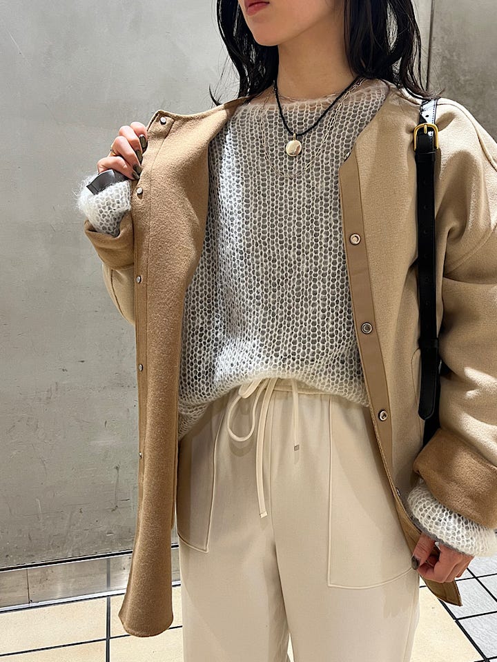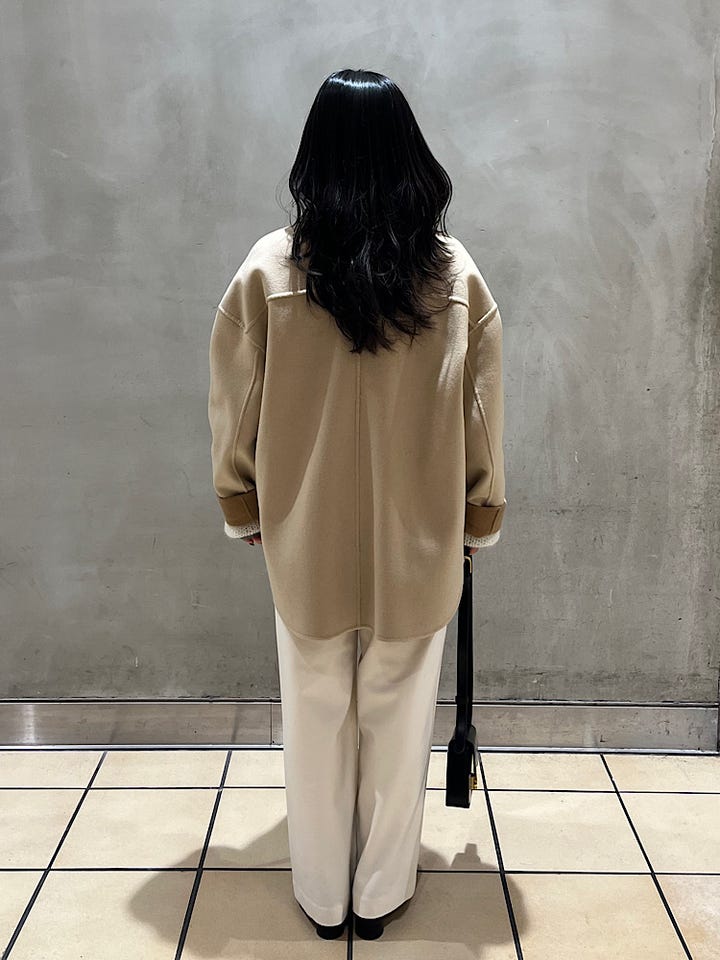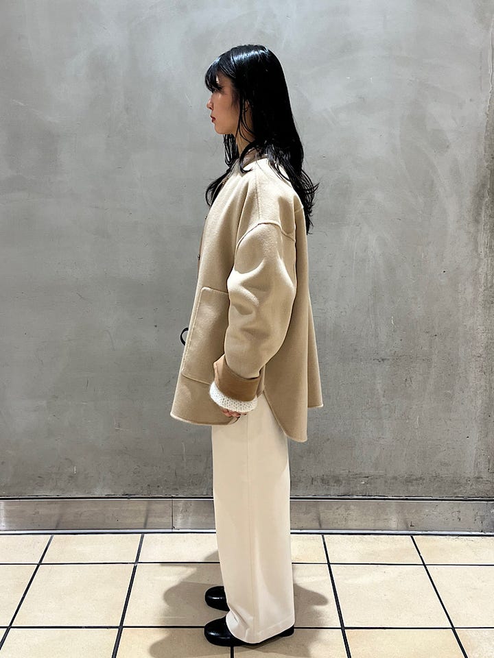 素材感・着心地:ウール素材で暖かく、薄手でさっと羽織れる軽い着心地。