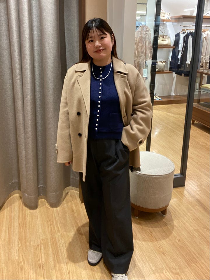 着心地:定番のピーコート!身頃にはウール混、袖裏地にはキュプラ100%使用で軽くて暖かい着心地です。袖裏地が付いているので、袖通しが滑らかです!丈の長さは156cmだとヒップラインが隠れるくらいになっています。