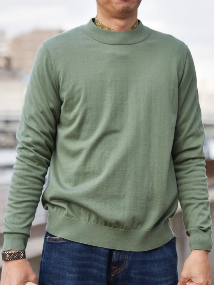 〔LARGE〕SHIPS:〈手洗い可能〉HANDFRAME 16ゲージ コットン/ウール モックネック ニット
