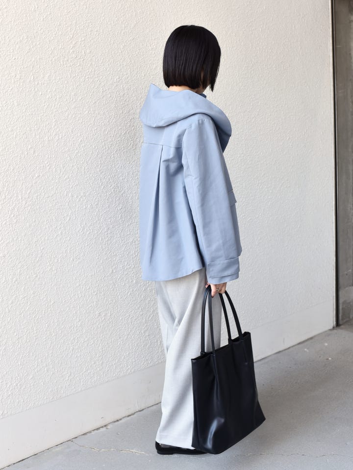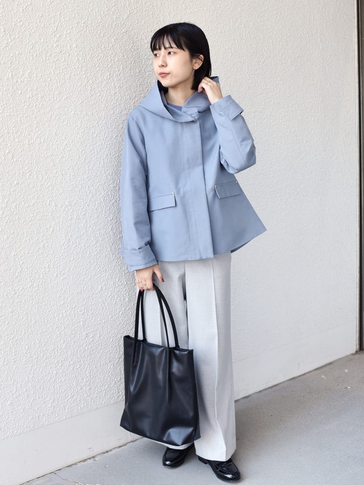 着用レビュー:ややハリがあるので、きれいめにも普段使いもどちらも使いやすいです。フードはボリュームがありますが意外と馴染んで程よくポイントになってくれます。後ろ丈がお尻が隠れるくらいなので安心感のある着心地です。