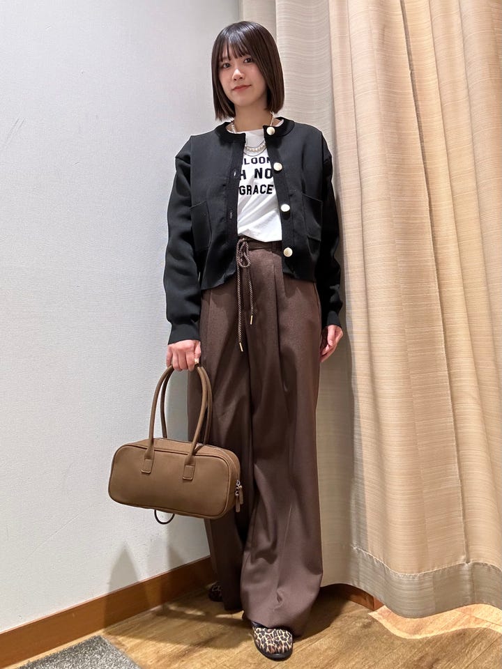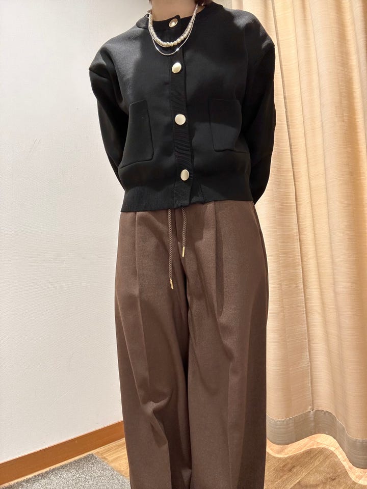 着心地:丈感短めでどんなボトムスとでも相性がよいです。ゴールドボタンがかわいいです!
