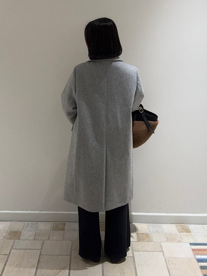 素材感・着心地:着丈と身幅が広すぎず長すぎずでとてもラインが綺麗なコートです。