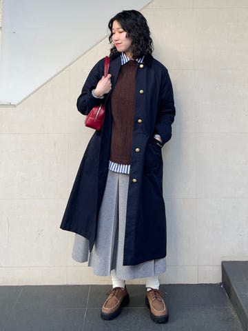 ロングスカートにスニーカーで女性らしさのあるカジュアルコーデに◎