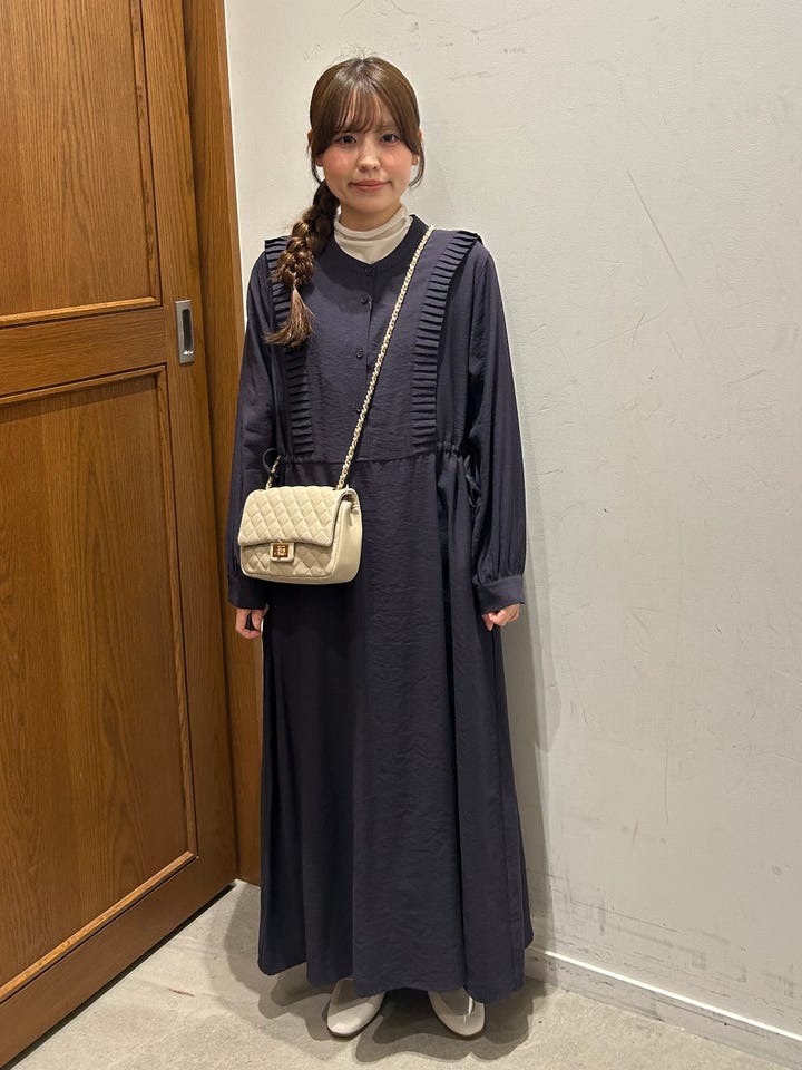 〔ONE SIZE〕SHIPS Colors:〈手洗い可能〉プリーツ デザイン ロングスリーブ ワンピース◇