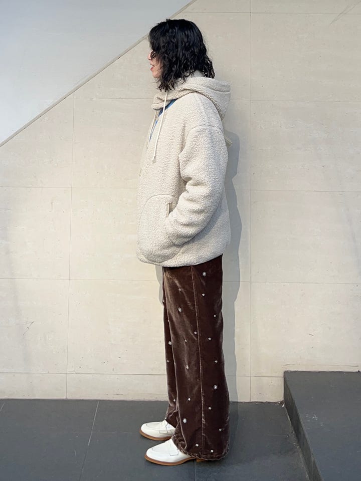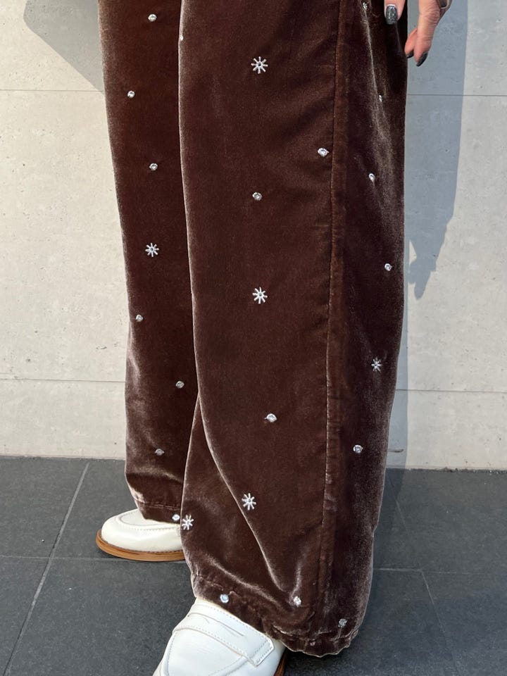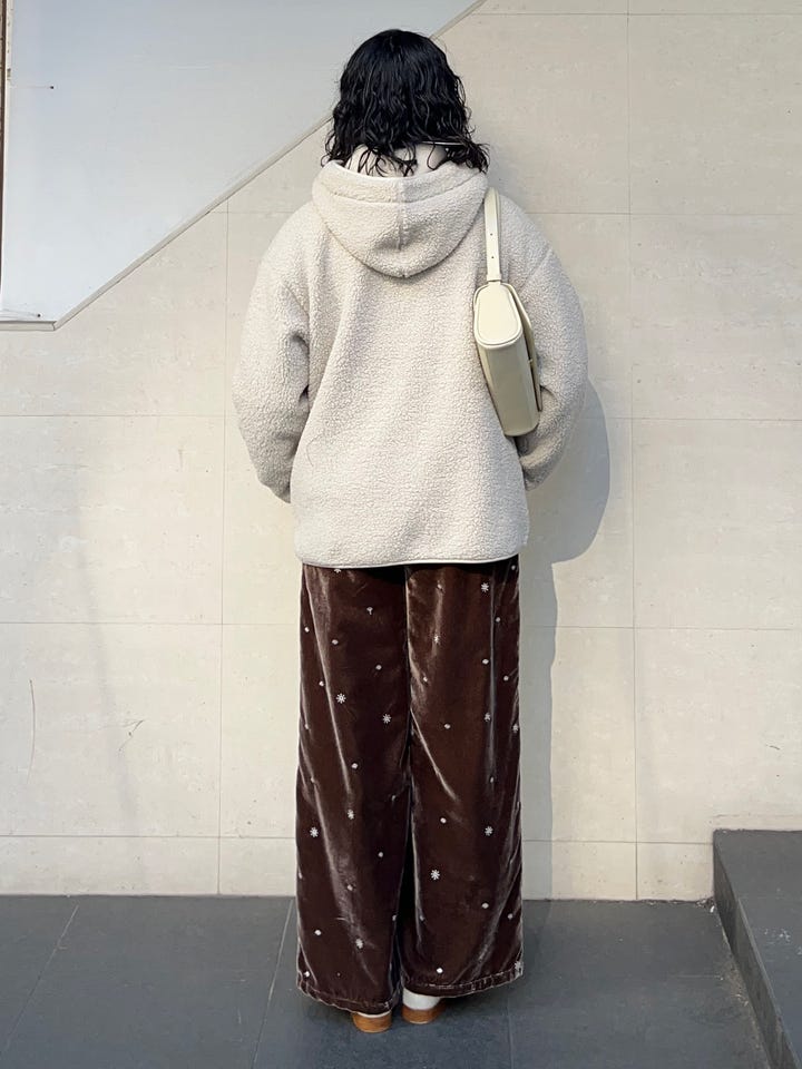 〔ONE SIZE〕SHIPS any:〈手洗い可能〉ポリエステル ベロア 刺繍 ストレート ワイド パンツ