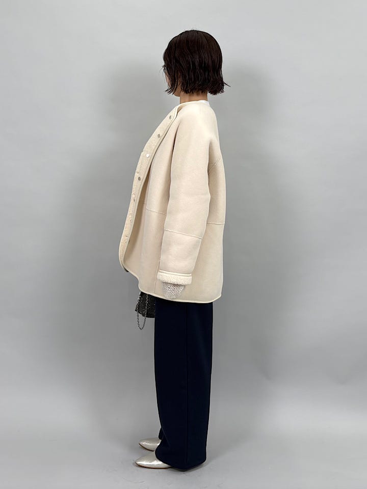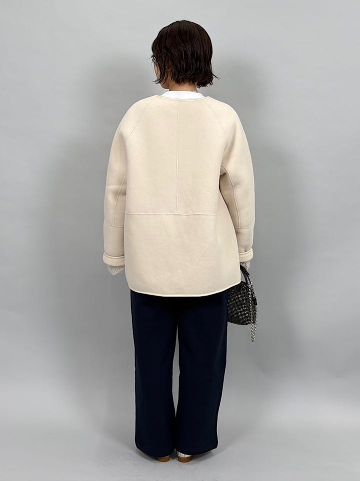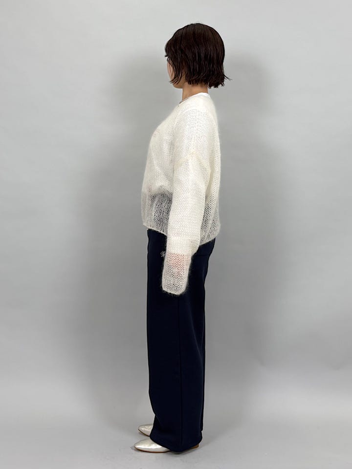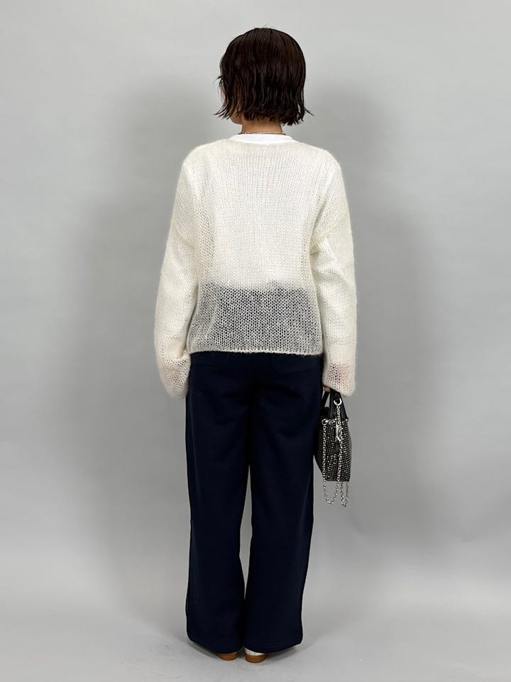 エアリーであたたかいモヘヤ素材。柔らかくチクチクしません。メッシュですがあたたかく着ていただけます。ゆとりのあるサイズ感なのでインナーを変えて、季節問わず使っていただけます。