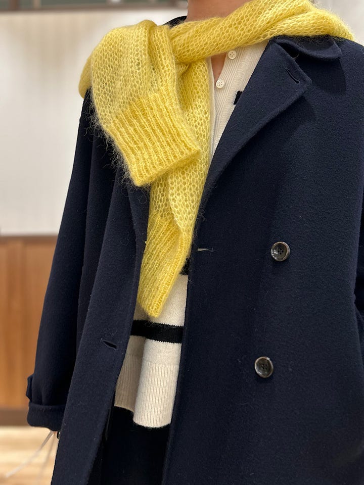 中に分厚いニットを合わせてもごわつかないサイズ感です。