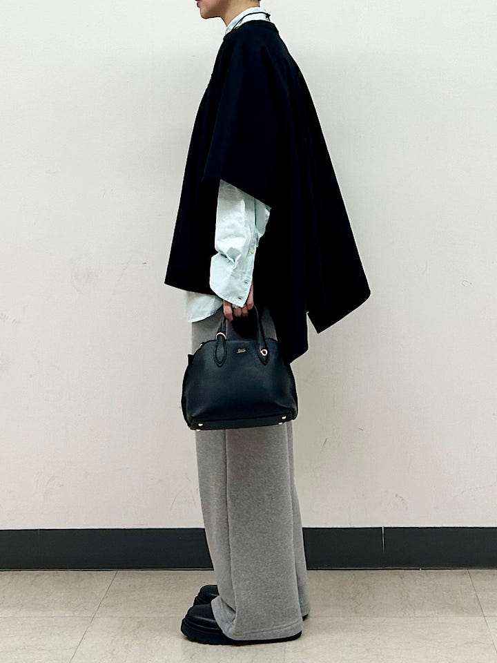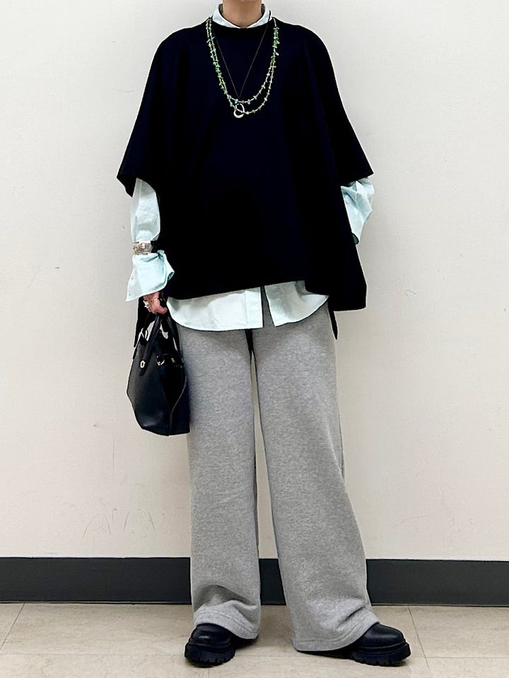 着心地:さらりとした肌触りで、シーズンレスで着られます。程よい厚みはありながら、ごわつきのないしなやかな素材でニットやジャケットのインナーにも使いやすいです。