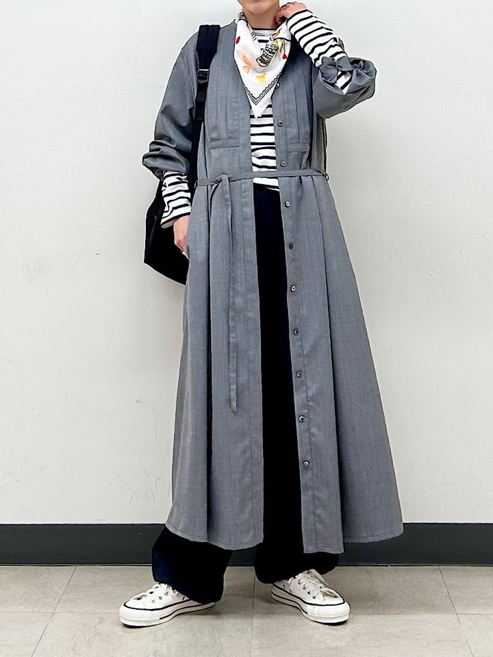 着心地:さらりとした肌触りの軽いウールです。裏地はなく、長いシーズン楽しめます。程よいゆとりもあり、羽織としても着やすいです。