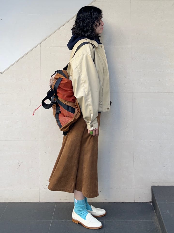着丈も身幅もちょうど良く、インナーにカットソーやシャツも入れられます。ボトムスもバランスがとりやすく、ワイドパンツやIラインのスカートなど、幅広く合わせていただけます。