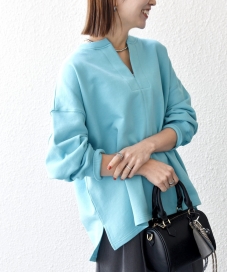 着用アイテム:USAコットン 裏毛 スキッパー ルーズ スウェット ブルー