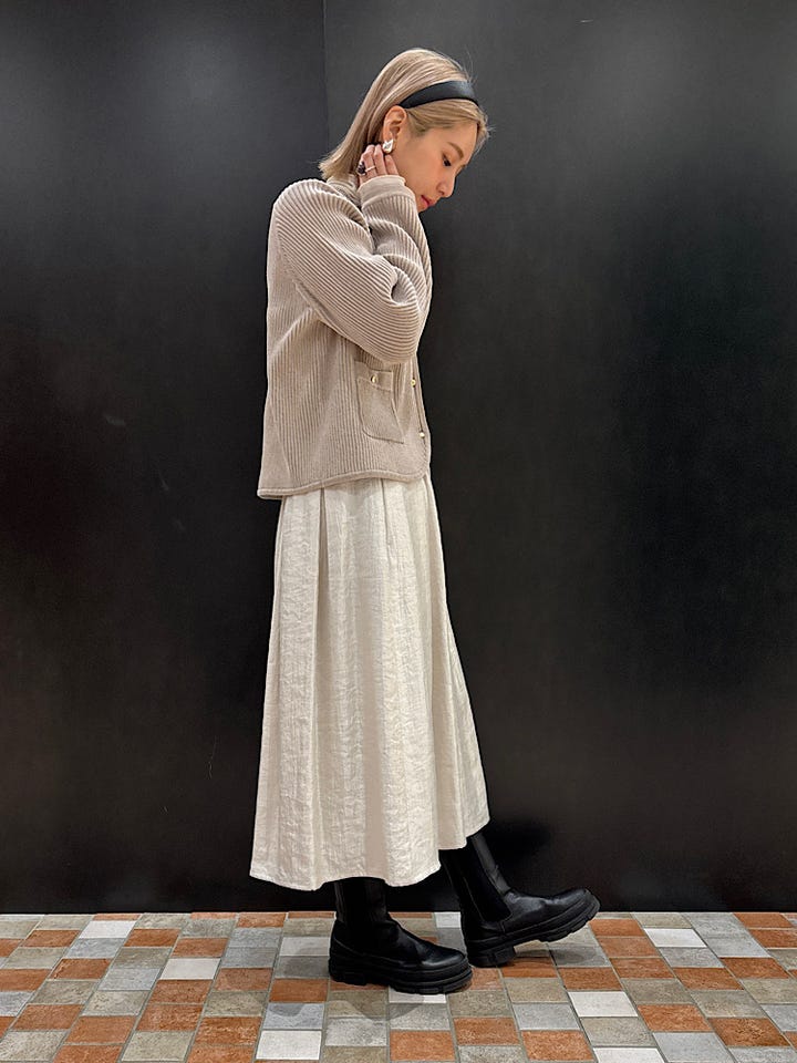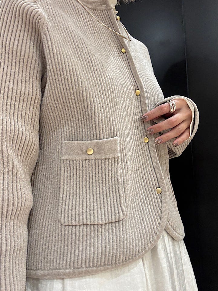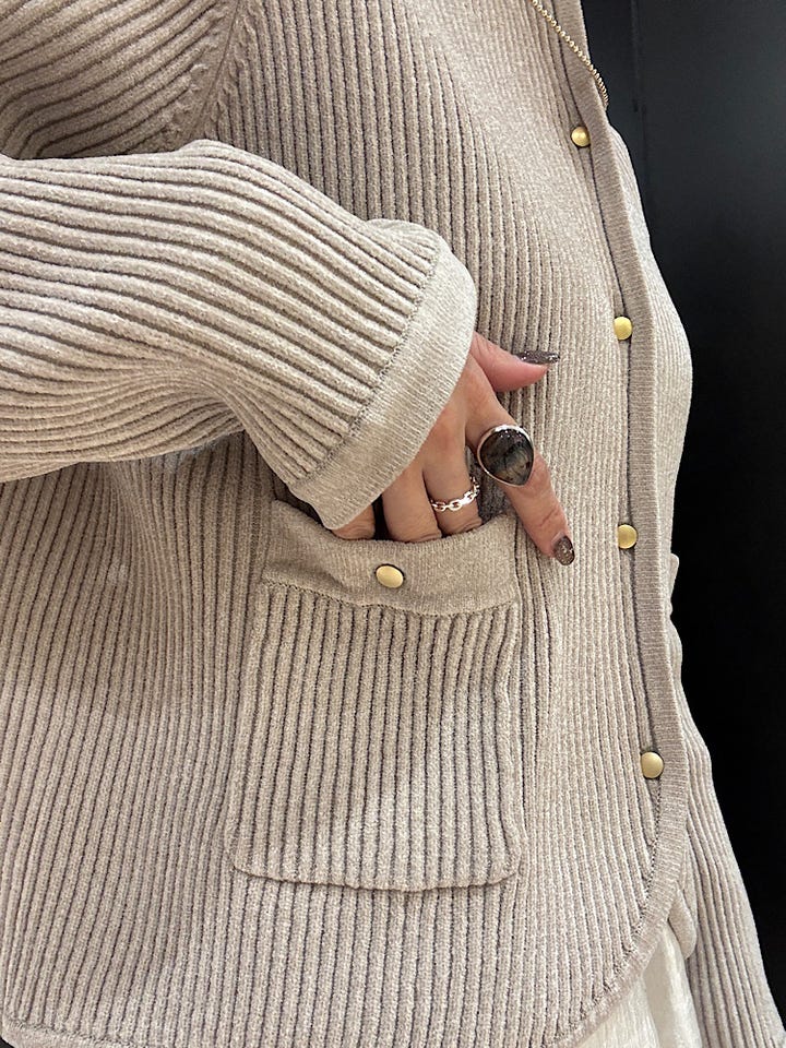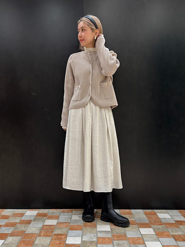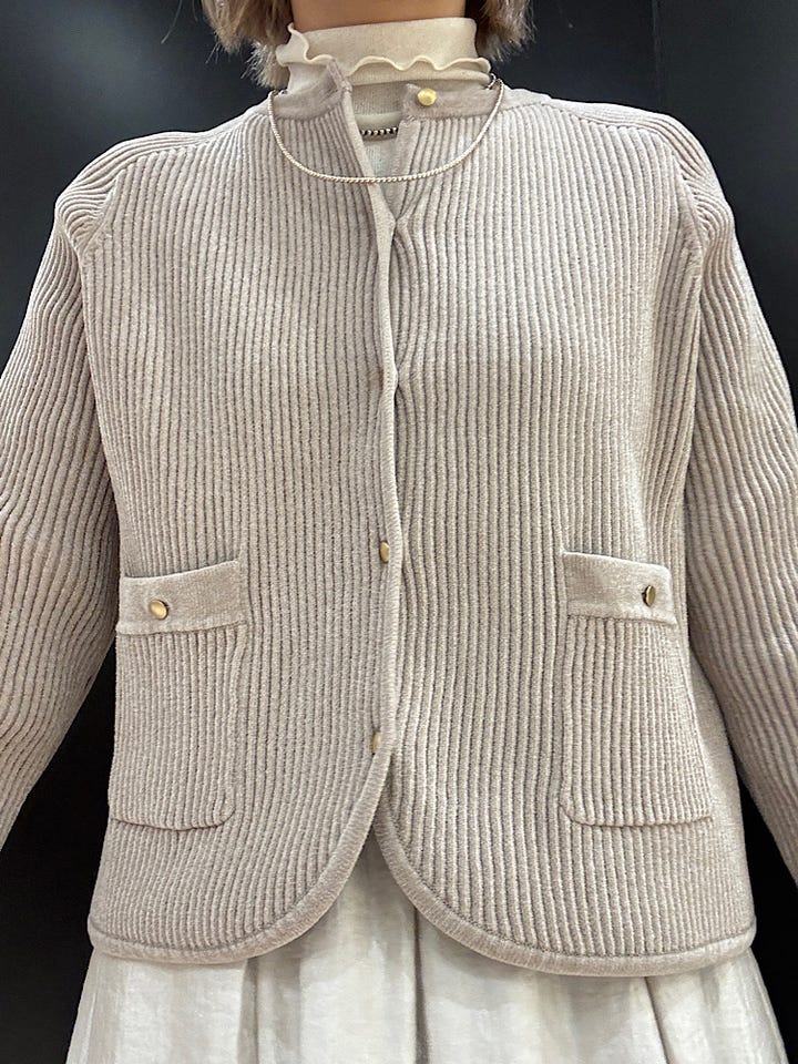 ジャケットとカーディガンの中間のような、きちんと感のあるニットジャケット。