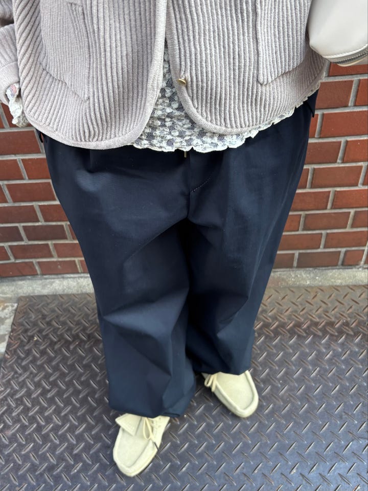 着心地:ハリがある素材感で春先にも着れるアイテムでした。裾も絞れるので長さの調節もしていただけます。