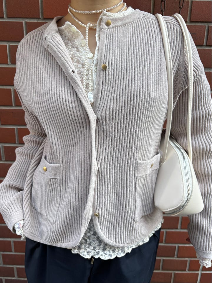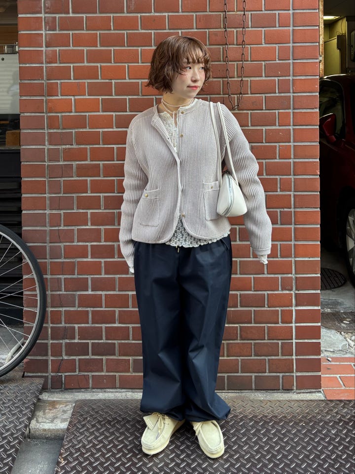着心地:丈感は短めなので小柄な方でもバランス良く着ていただけます。ジャケットの様な裾のカットも可愛いです。カジュアルでも少し綺麗めな場面でもどちらでも使えるデザインです。