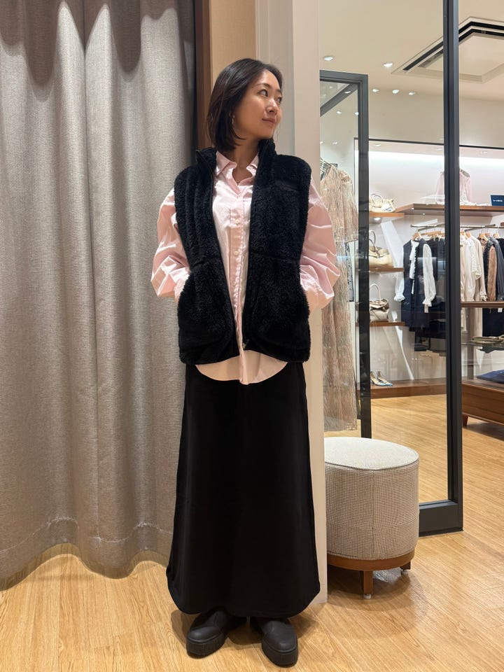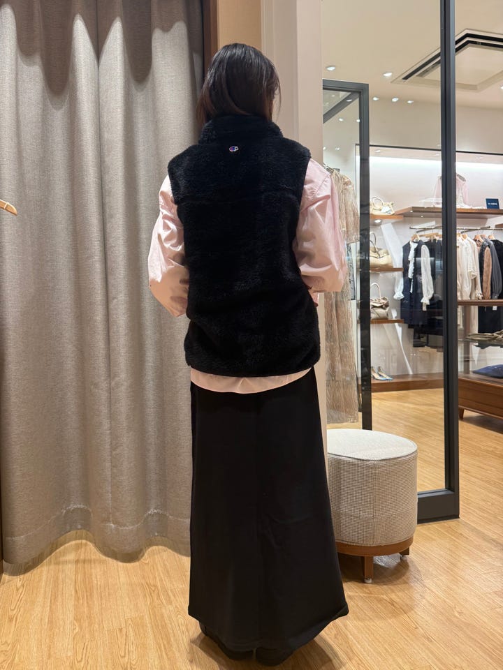 サイズ感・着心地:championのボアベスト。肌触りが柔らかく着ていてとっても気持ち良い。ベストとは言えど侮れないあったかアイテムです。