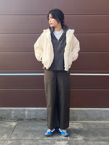素材感・着心地:ゆったりとしたサイズ感。インナーに厚手のアイテムと合わせても◎