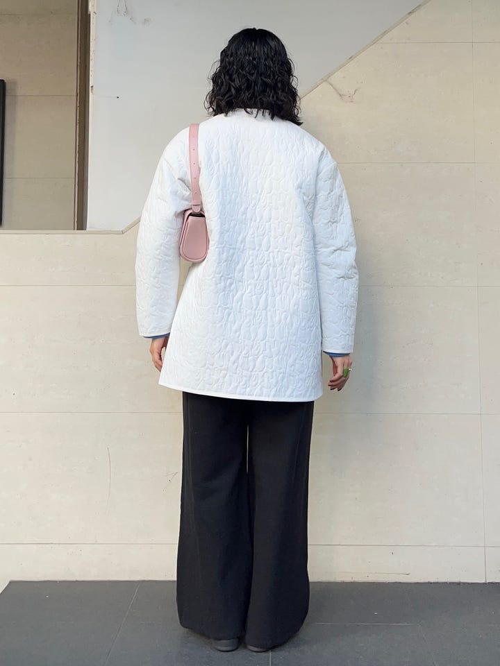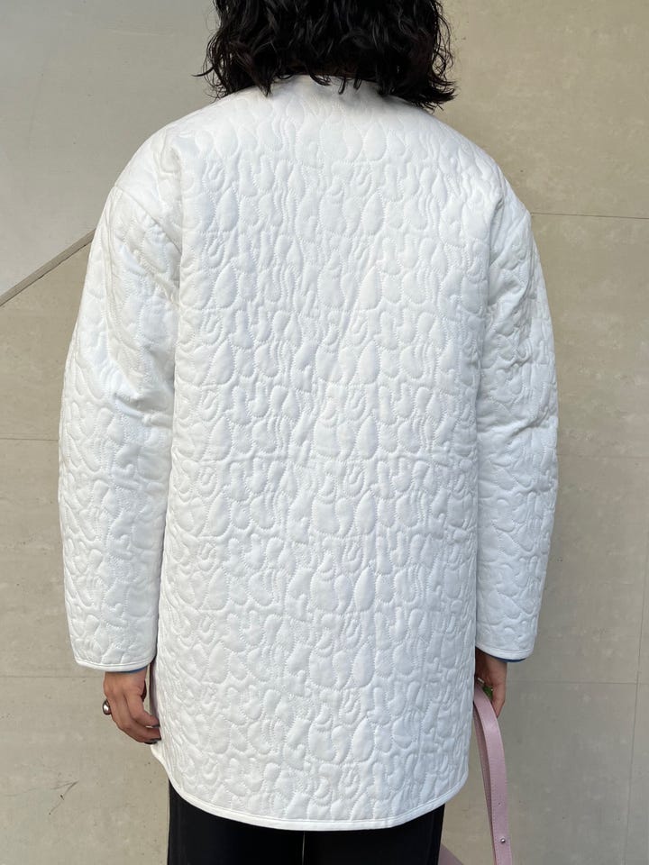 ◆ 商品名: キルティングステッチノーカラーミディコート