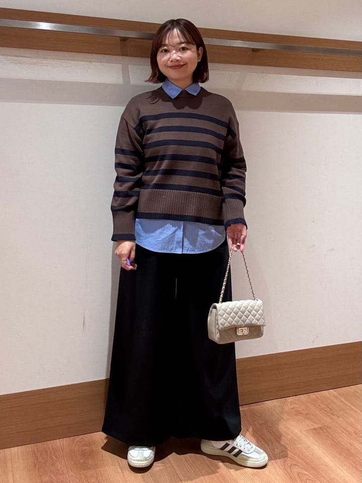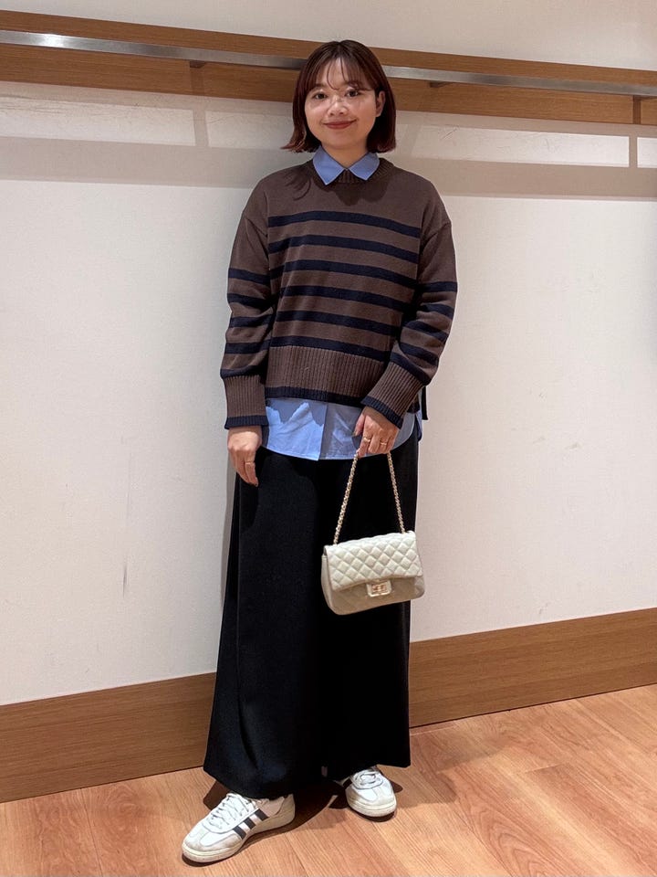 大人っぽいボーダーが目を惹くフラッフィーシリーズのクルーネックニット。レイヤードしてもゴワゴワせず着れます!