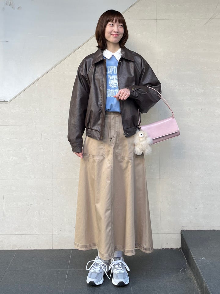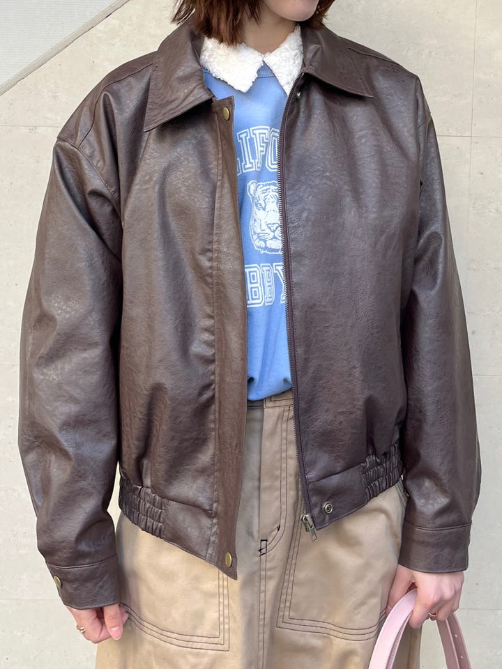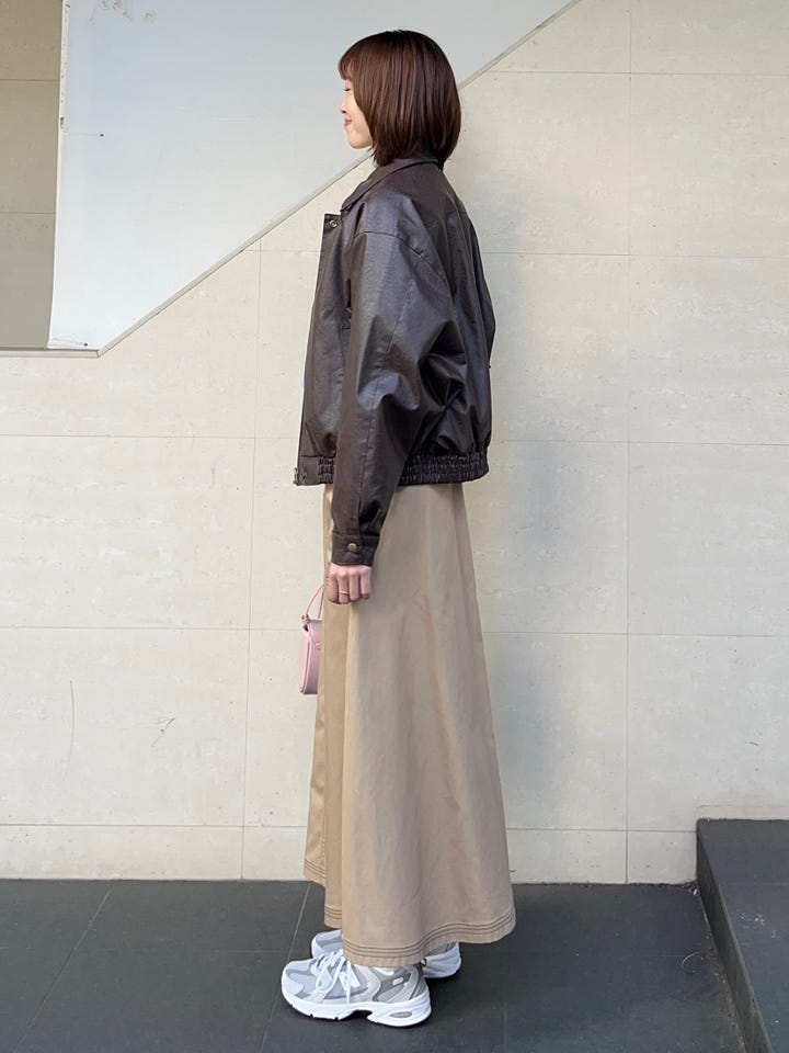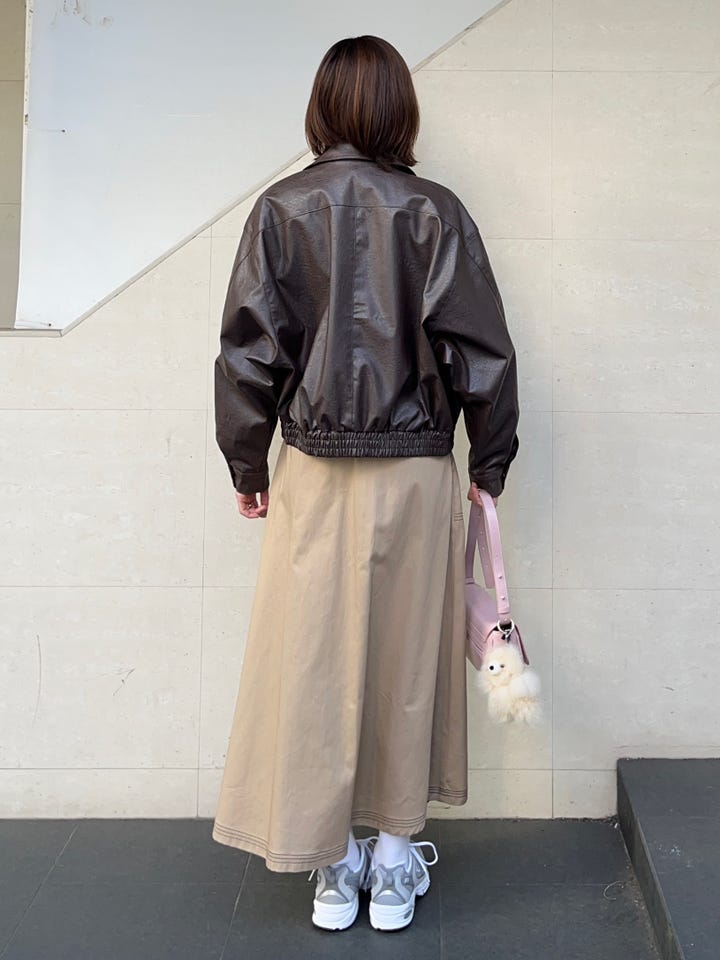 衣長和版型都非常好,有讓比例看起來更好的效果。皮革材質帶有一點點光澤,和各種風格的穿搭都能搭配。