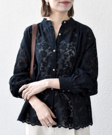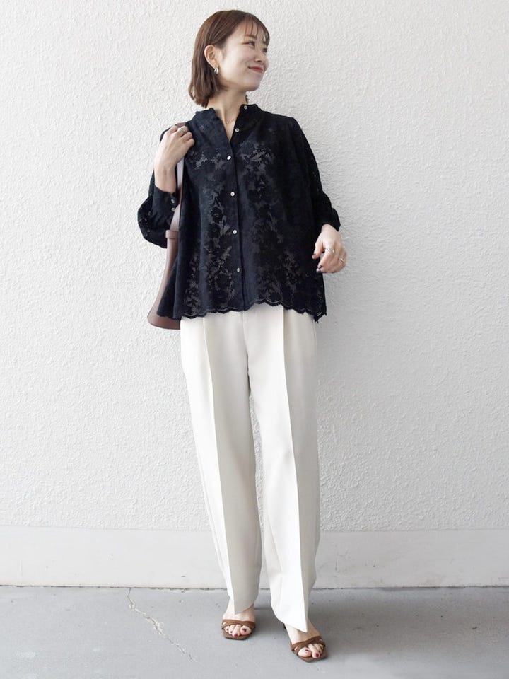 着用アイテム:フラワーメッシュ レース バンドカラー タック シャツ ブラック