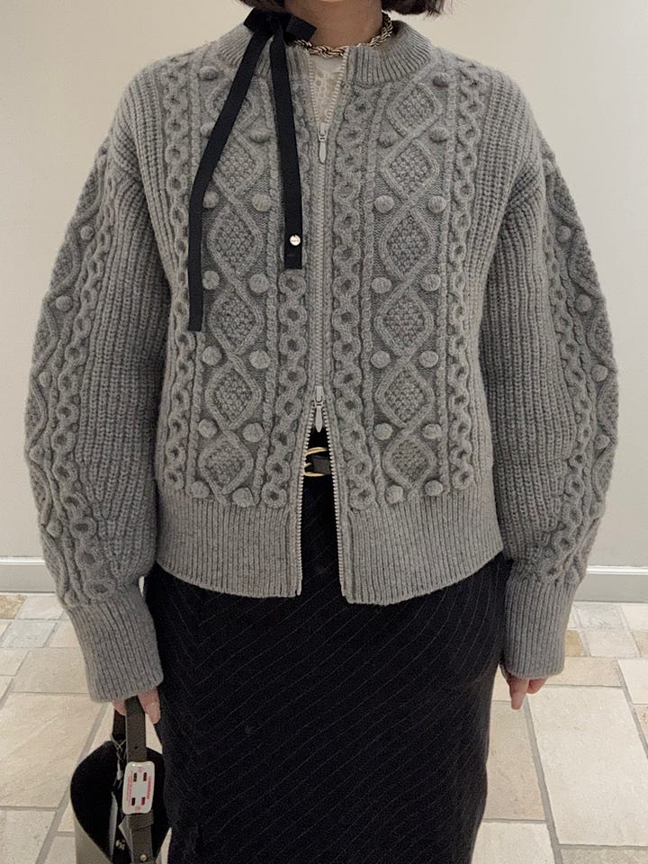 〔ONE SIZE〕SHIPS Primary Navy Label:〈手洗い可能〉PON PON ケーブル ジップ アップ カーディガン