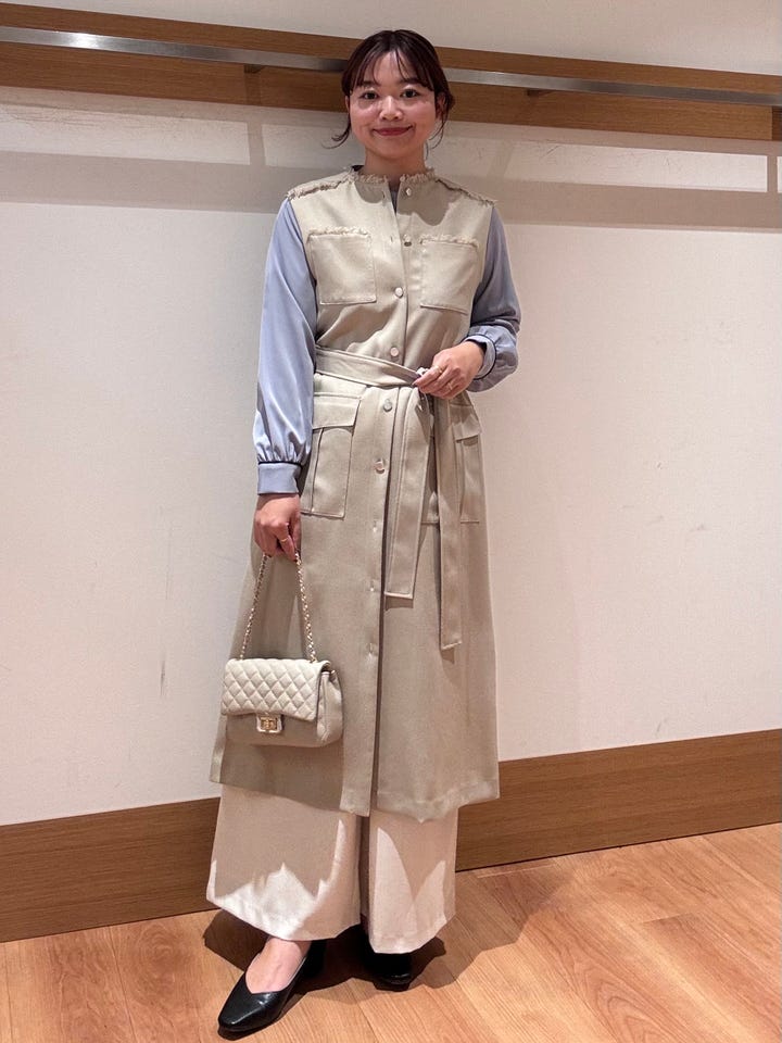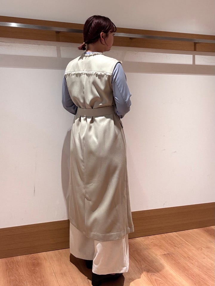ツイード風の素材を使用し、フリンジが女性らしいポイントのジレワンピース。