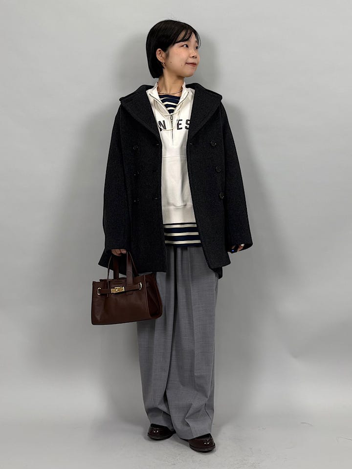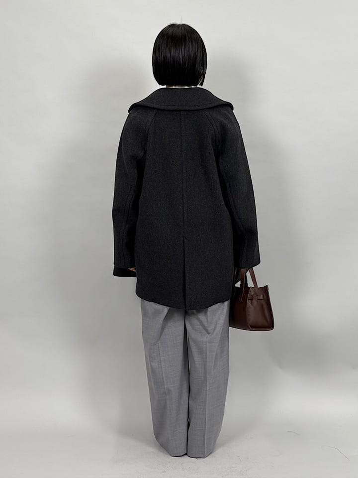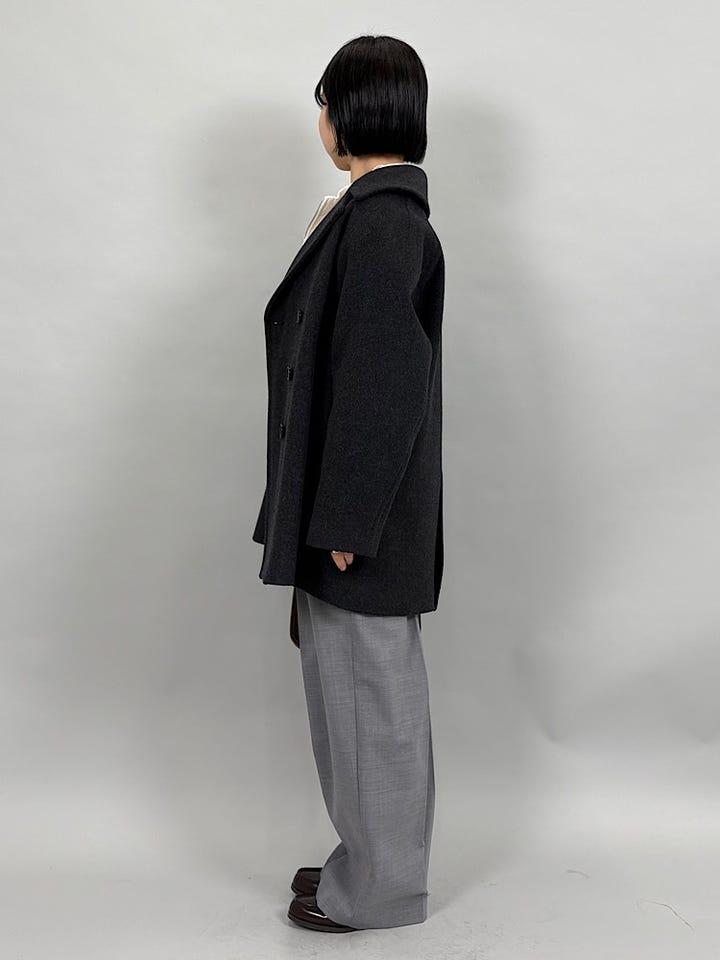 上質でなめらかなウール素材。襟が立体的なので、肩まわりがすっきりみえます。やわらかく着心地抜群です◎
