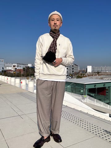 【素材感・着心地】かなりゆったりしたシルエットですが、裾に向かって緩やかにテーパードしている為、カジュアル過ぎず革靴などとも高相性。共生地でジャケットのご用意もございますのでセットアップでも着ていただけます。