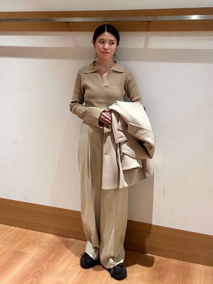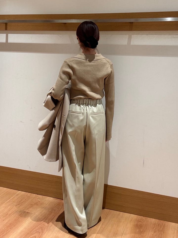 女性らしいデザインなので、綺麗めなパンツはもちろんデニムなどカジュアルなボトム合わせでも!