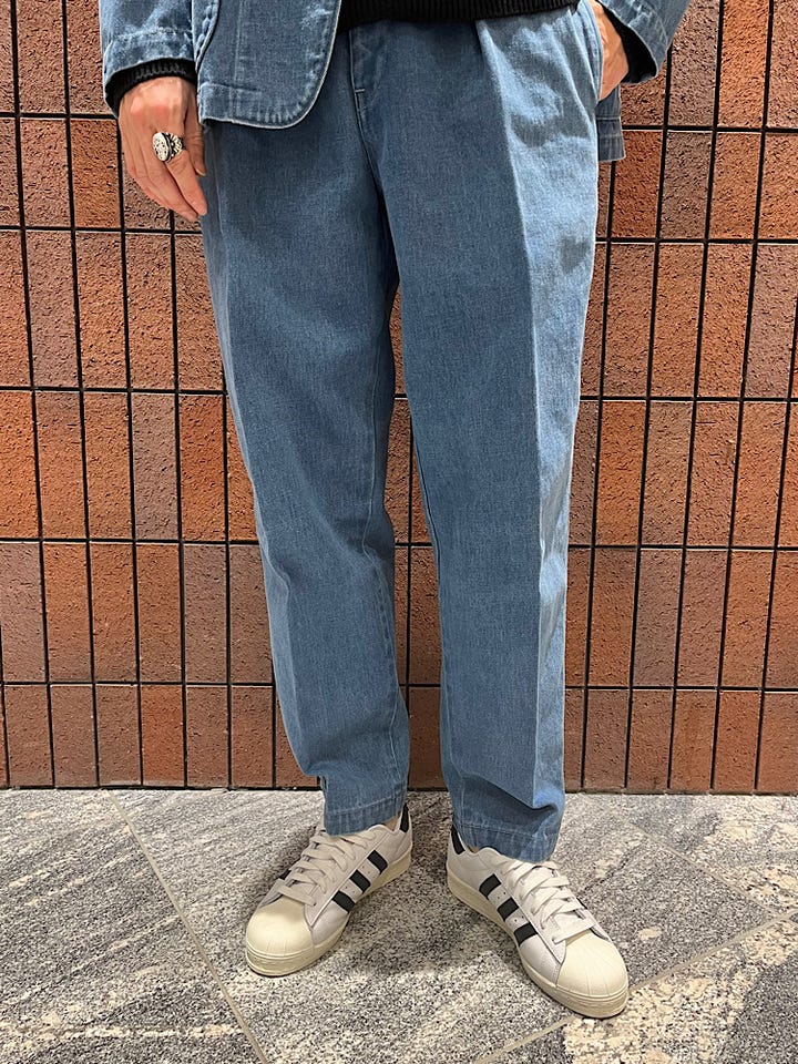 着用感:デニムの肉厚さはあるが羽織りやすい。