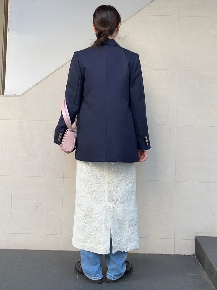 コンパクトなシルエットですが、そこまでフィットしすぎないので程よく身体のラインを拾ってくれて綺麗に見せてくれるアイテムです。
