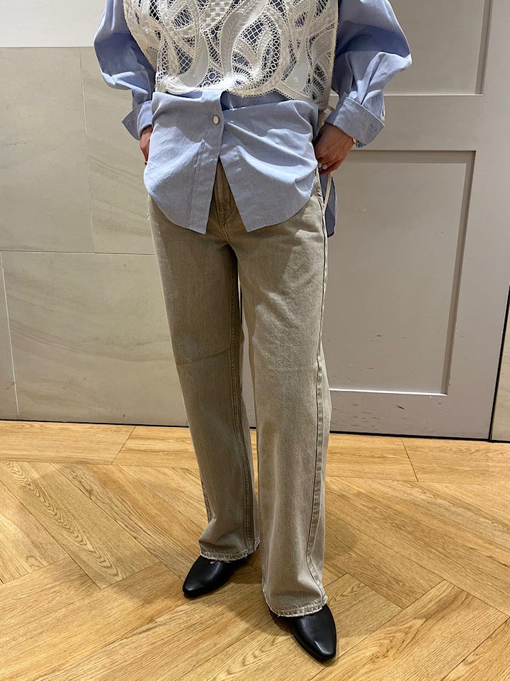 程よいストレートシルエットで、ライン綺麗で上品に着用可能です◎カラーもすごく柔らかく、とっても可愛いです。主役になるデニムです!!