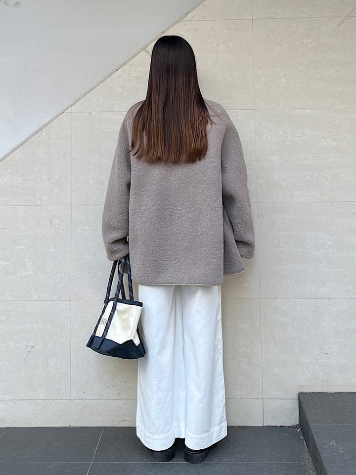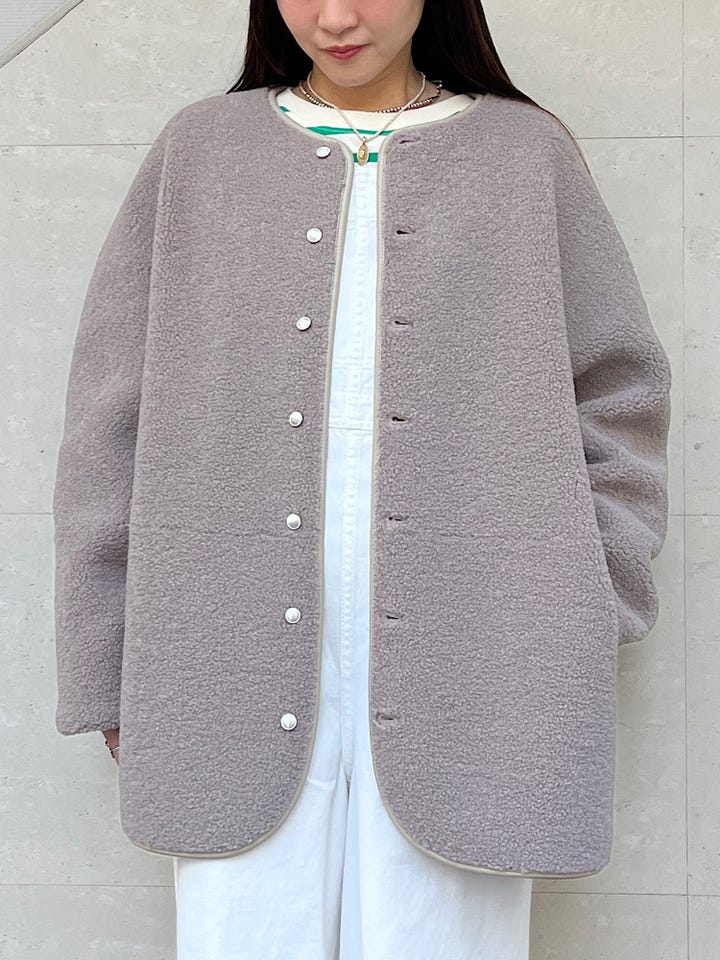 リバーシブルの仕様で全く違った印象で着られるのが魅力のアウターです。カジュアルにも綺麗めにも着れます。ボアでもボリュームが出過ぎず、着やすいです。