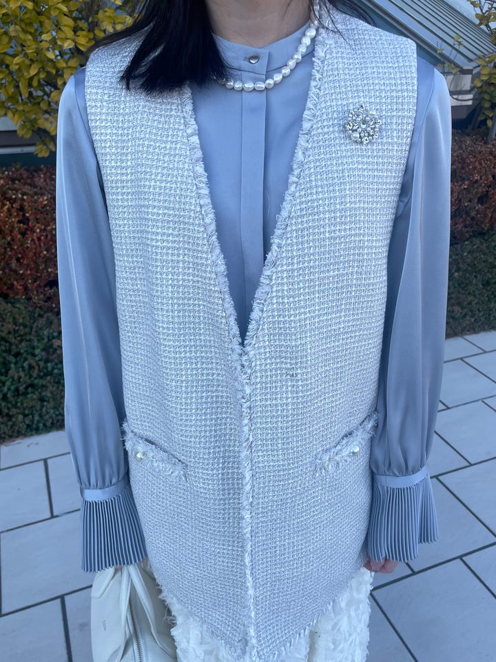 〔ONE SIZE〕トライスピン 杢 ツイード カラーレス ジレ(セレモニー対応可)