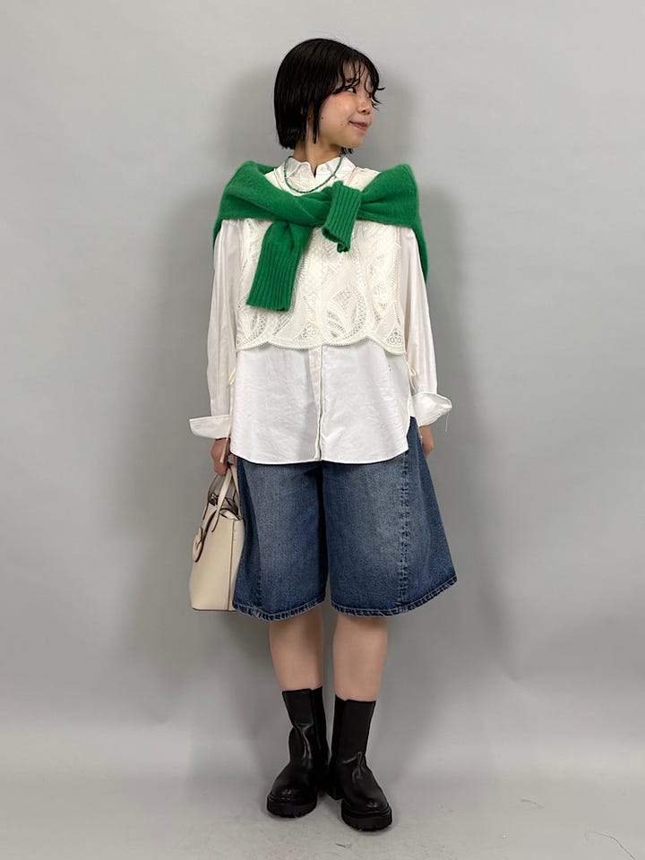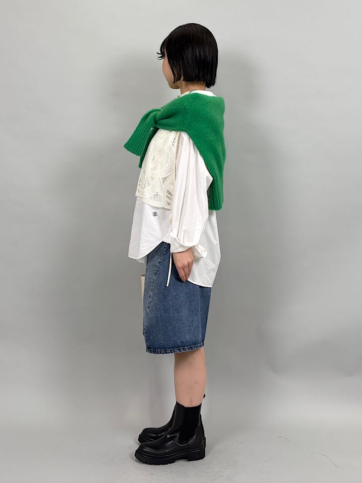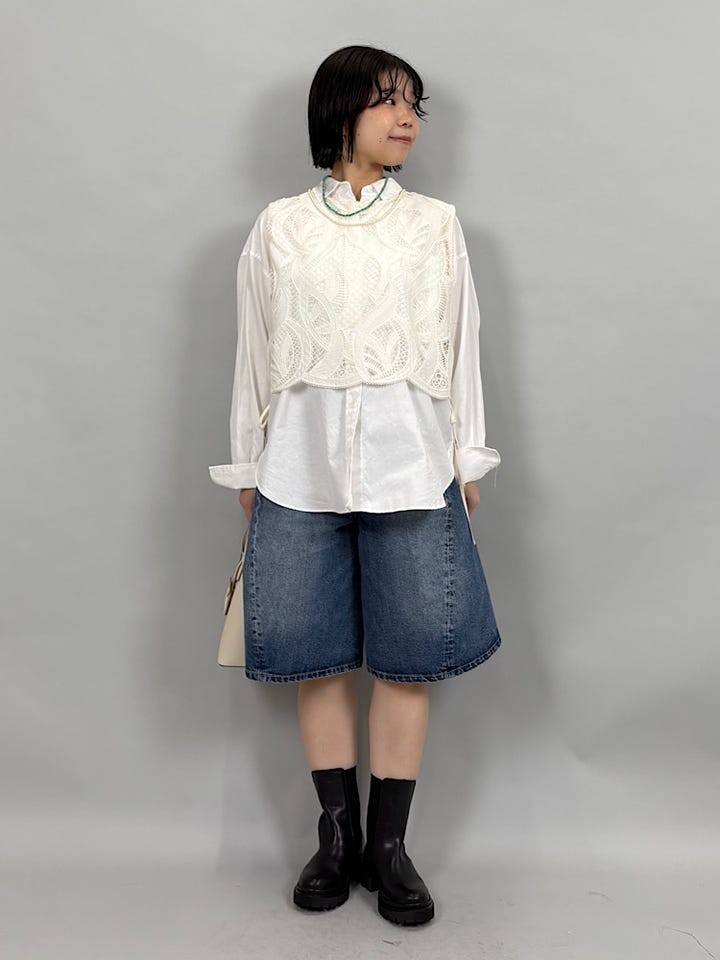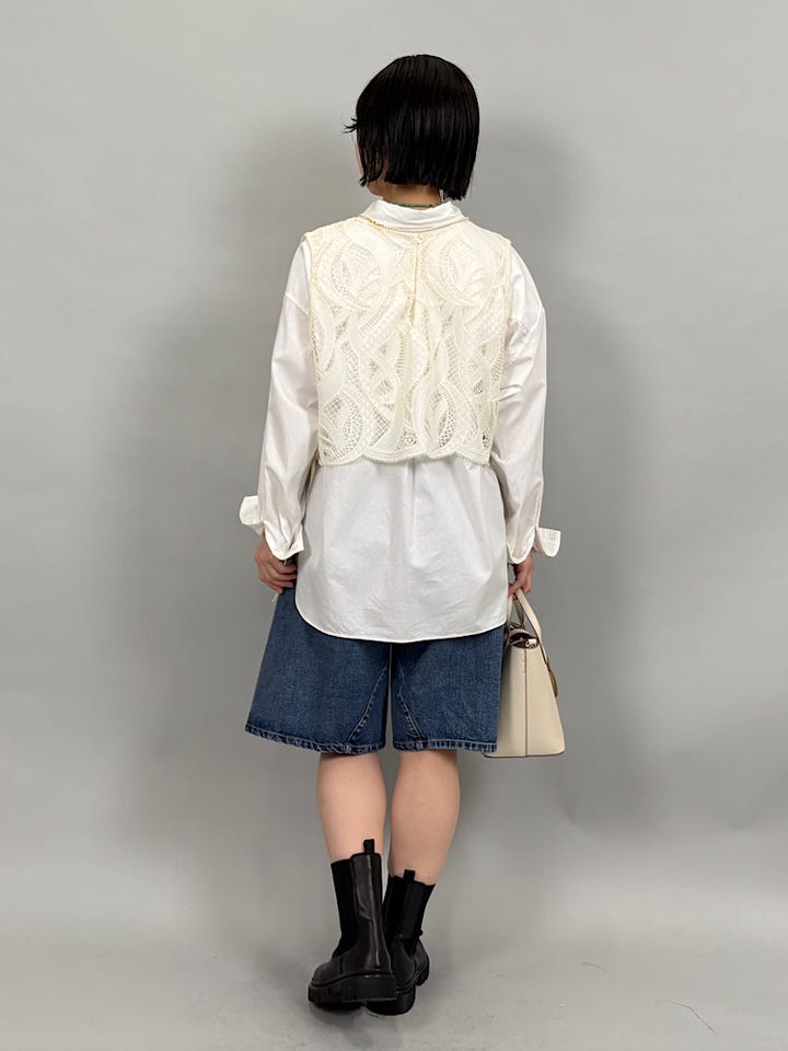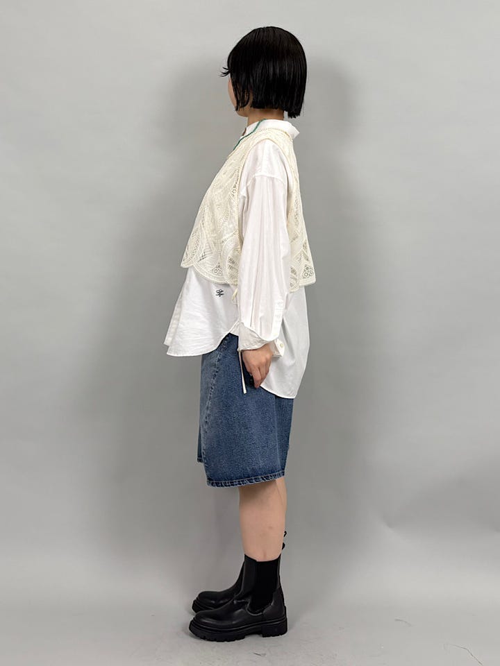 軽くやわらかいレース素材。軽い着心地です◎エンブロイダリーレースが上品です。程よい薄さと軽さなので、シャツやカットソーの重ね着にもオススメです◎