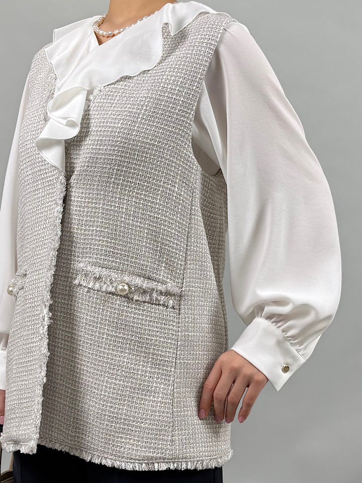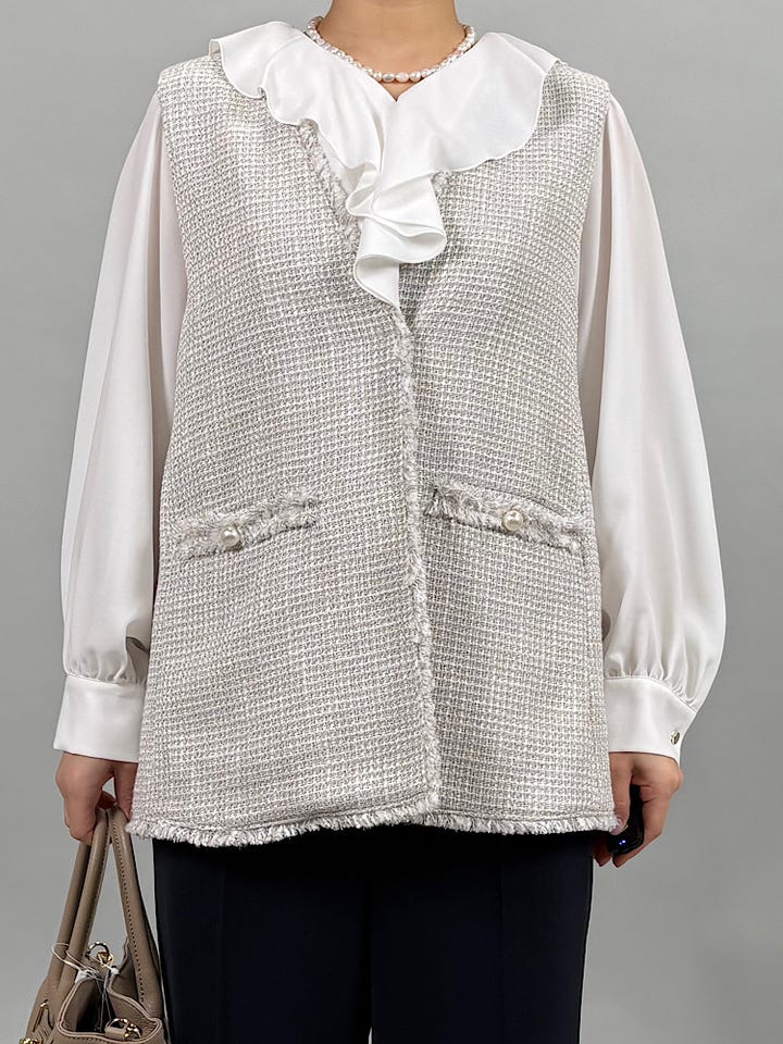 〔ONE SIZE〕トライスピン 杢 ツイード カラーレス ジレ(セレモニー対応可)