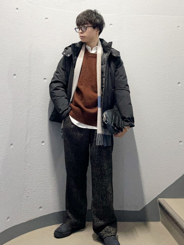 暗くなりがちな冬のアイテムに大人な色味をプラスしたコーディネート