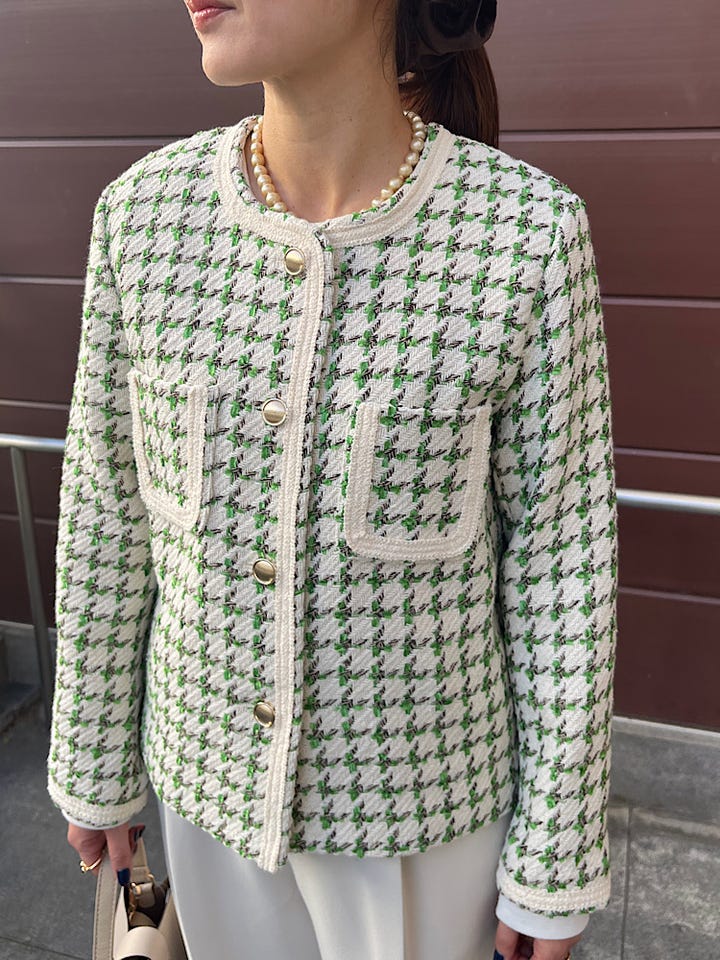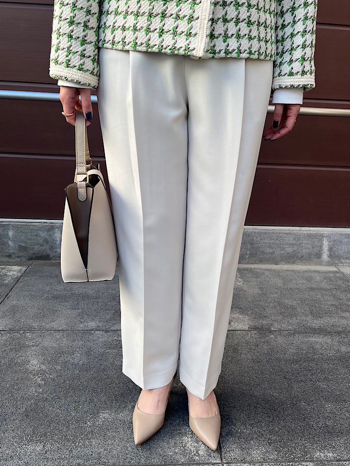 素材感・着心地: ツイード素材なので、キレイめにもカジュアルにも着ていただけます。