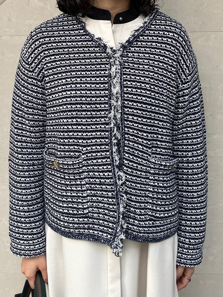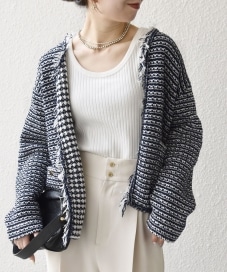 ◆ 商品名: ツイードライクフリンジニットジャケットカーディガン