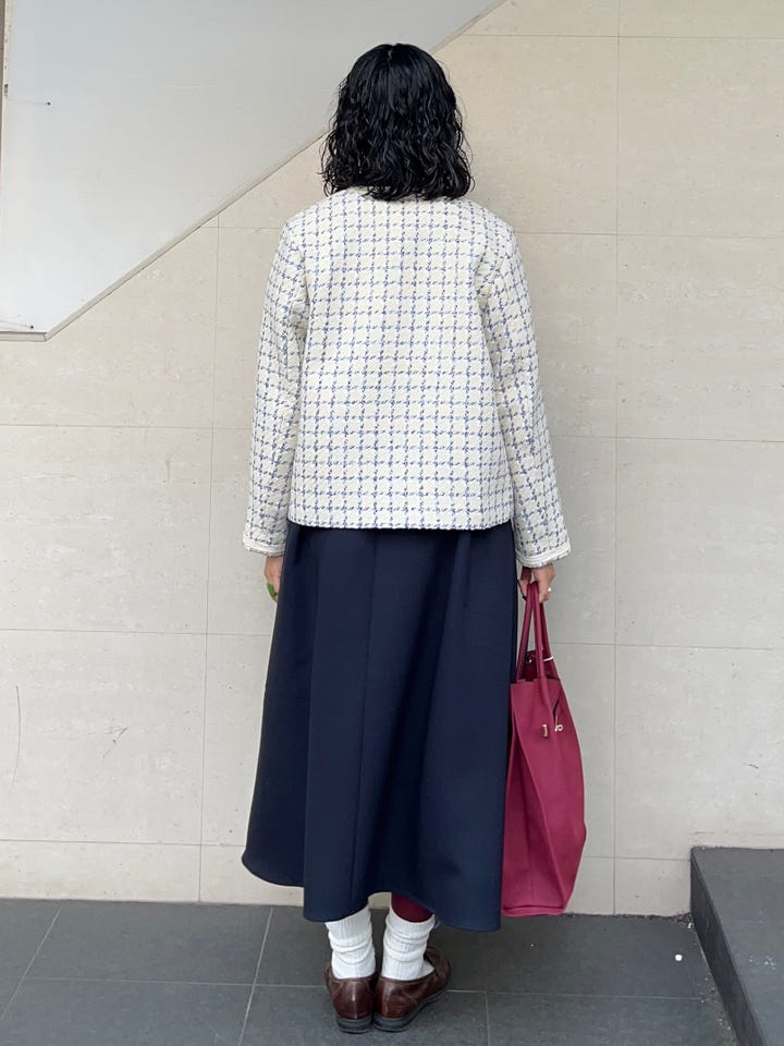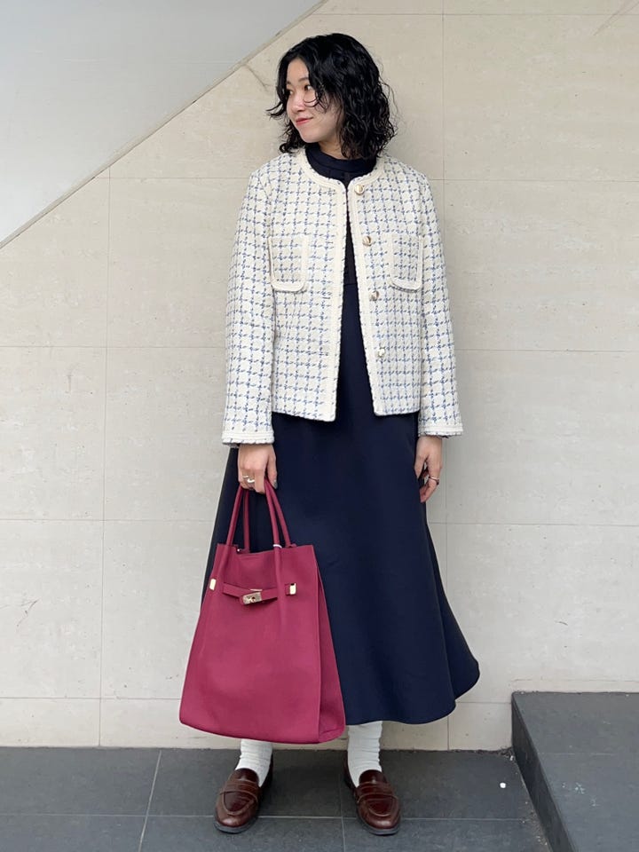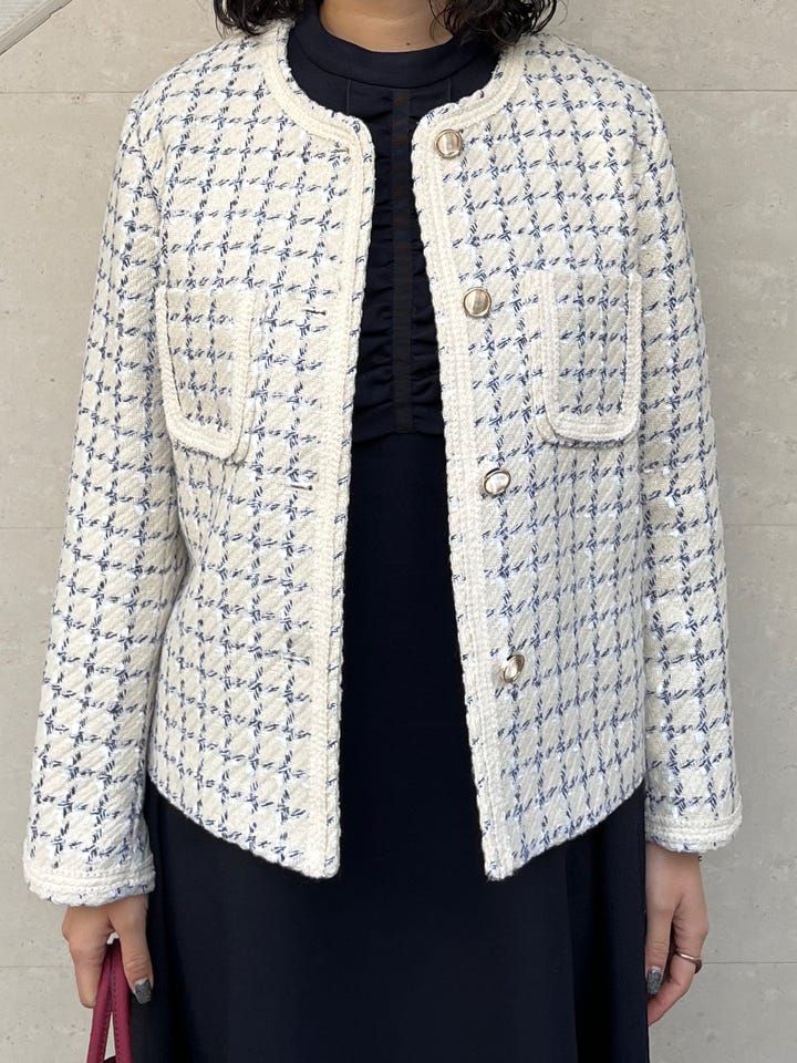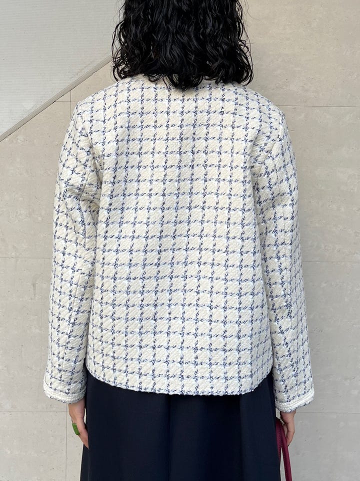 〔ONE SIZE〕SHIPS any: ツイード パイピング ノーカラー ジャケット