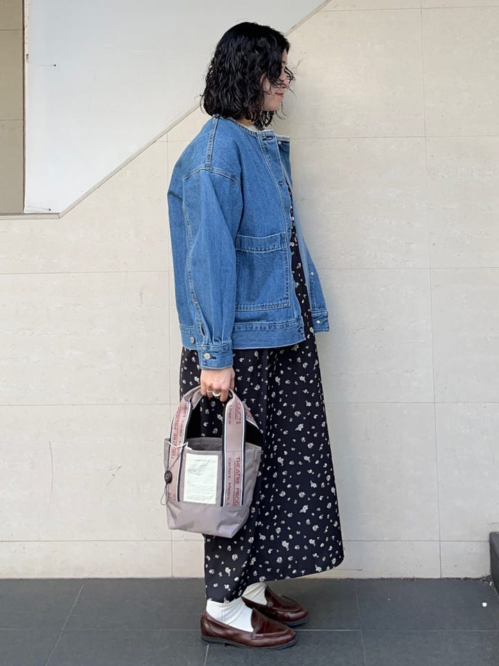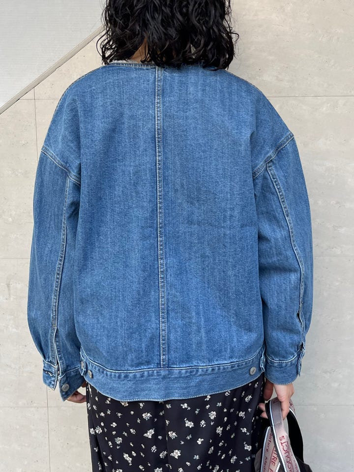 〔ONE SIZE〕SHIPS any: ノーカラー デニム ブルゾン[SHIPS any DENIM]