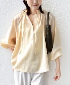 〔ONE SIZE〕〈手洗い可能〉シアー タンブラー リボン デザイン 長袖 ブラウス