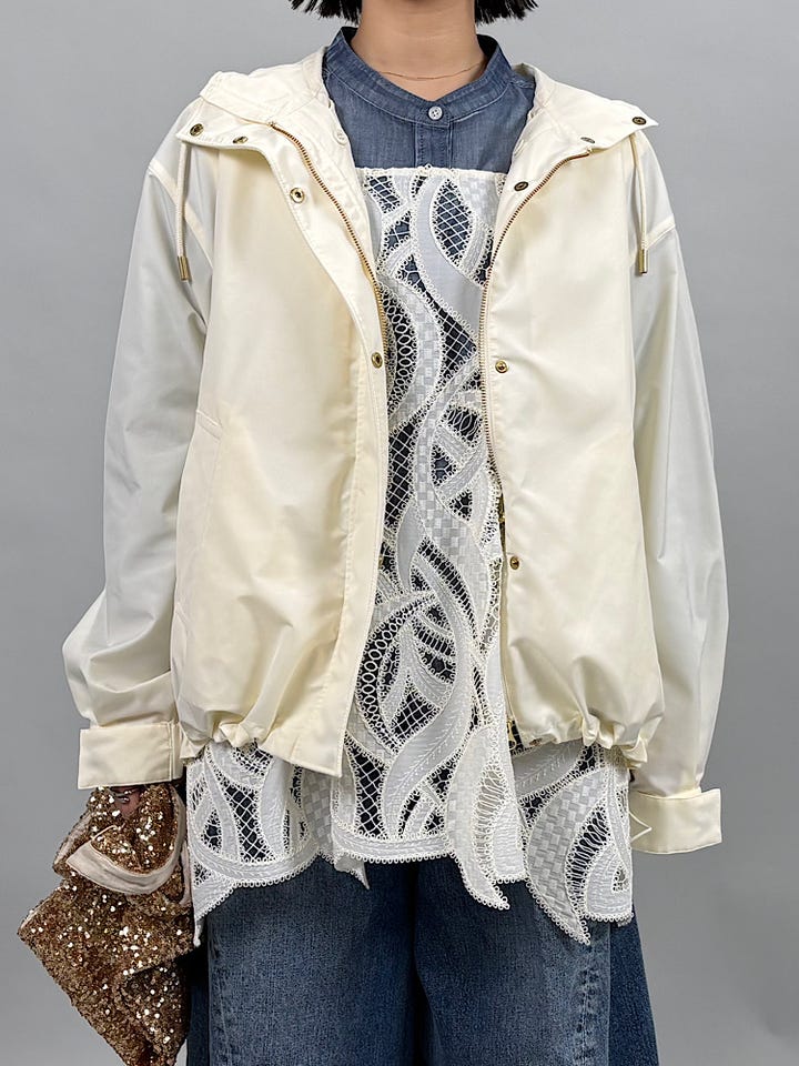 なめらかで張りがきれいな素材感。軽い着心地です◎撥水機能つきで、急な天候変化にも安心です。取り外し可能なベスト型のキルトライナー付きで、春先まで長く使っていただけます。裾のドローコードを絞って形を変えていただけます。