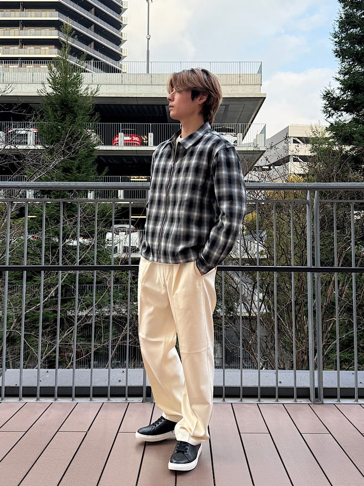 身幅はややゆとりを持たせていて、丈感は少し短めに、仕上げているのでどのコーデにも合わせやすくオススメです。