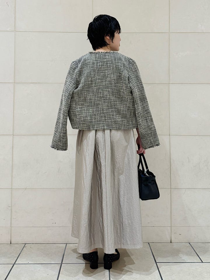 着丈はやや短めなのでスカートやワイドパンツなどの