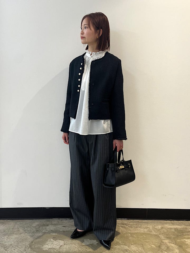 素材感: しっかりとしたツイード素材で、1つは持っておきたいアイテム。